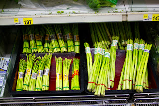 on our way back to the hotel, we stopped in a grocery store (cheaper to buy things here than at convenience stores all the time!). they had thin AND thick asparagus!